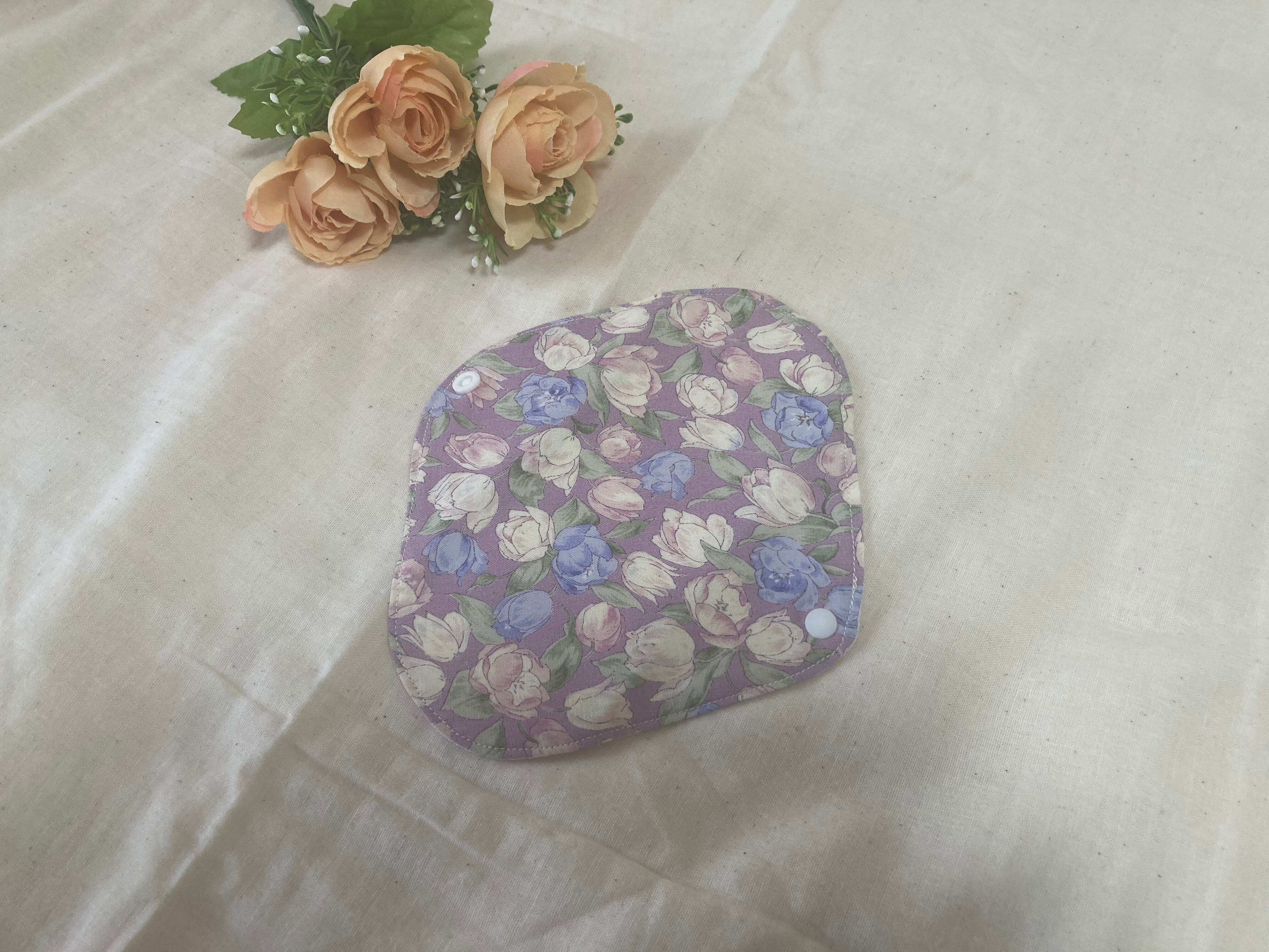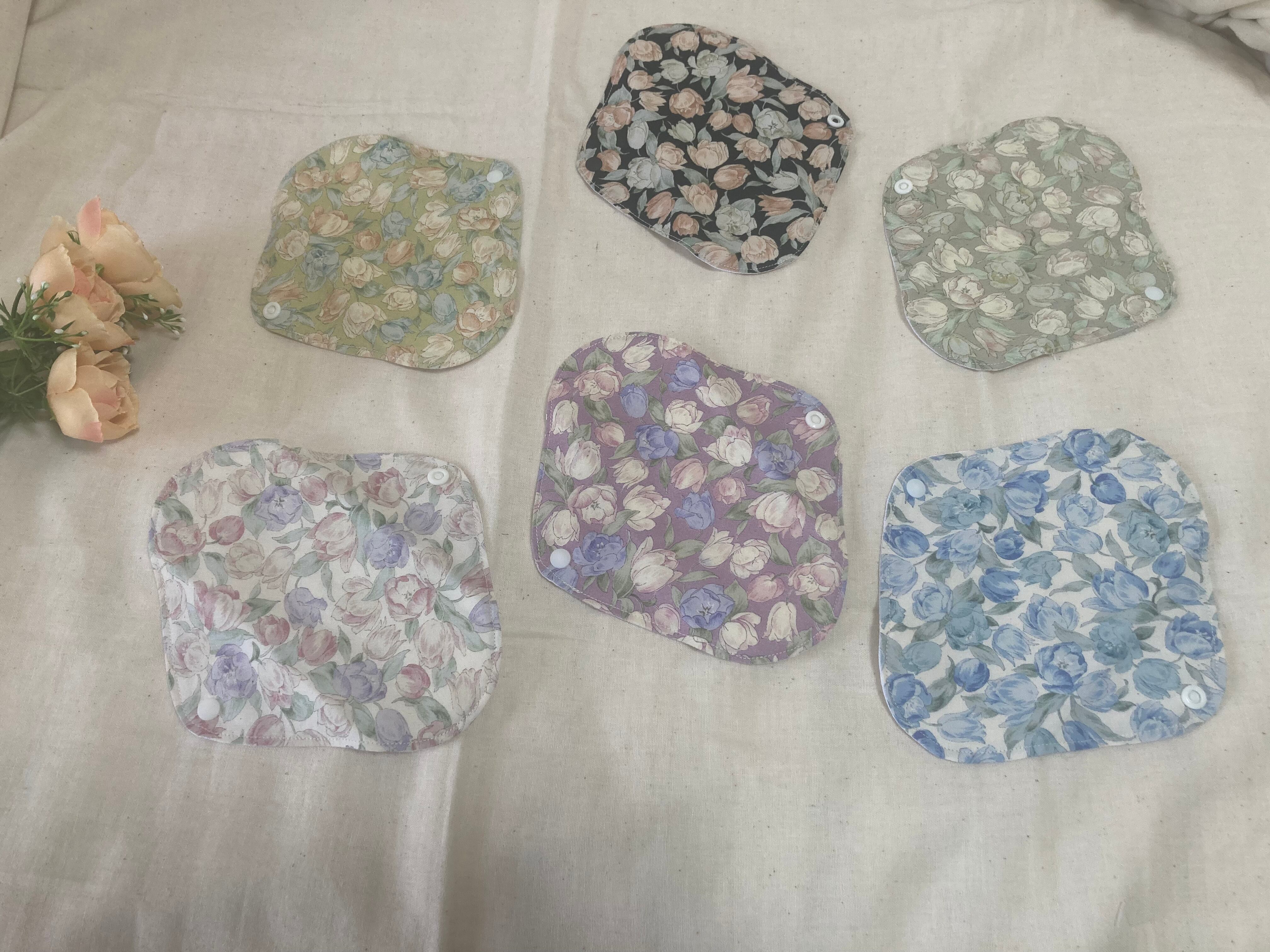 肌面にヘンプ生地を使用した、チューリップ柄のヘンプ布ライナー全6色から、お好きなお色を2枚お選び頂けます。