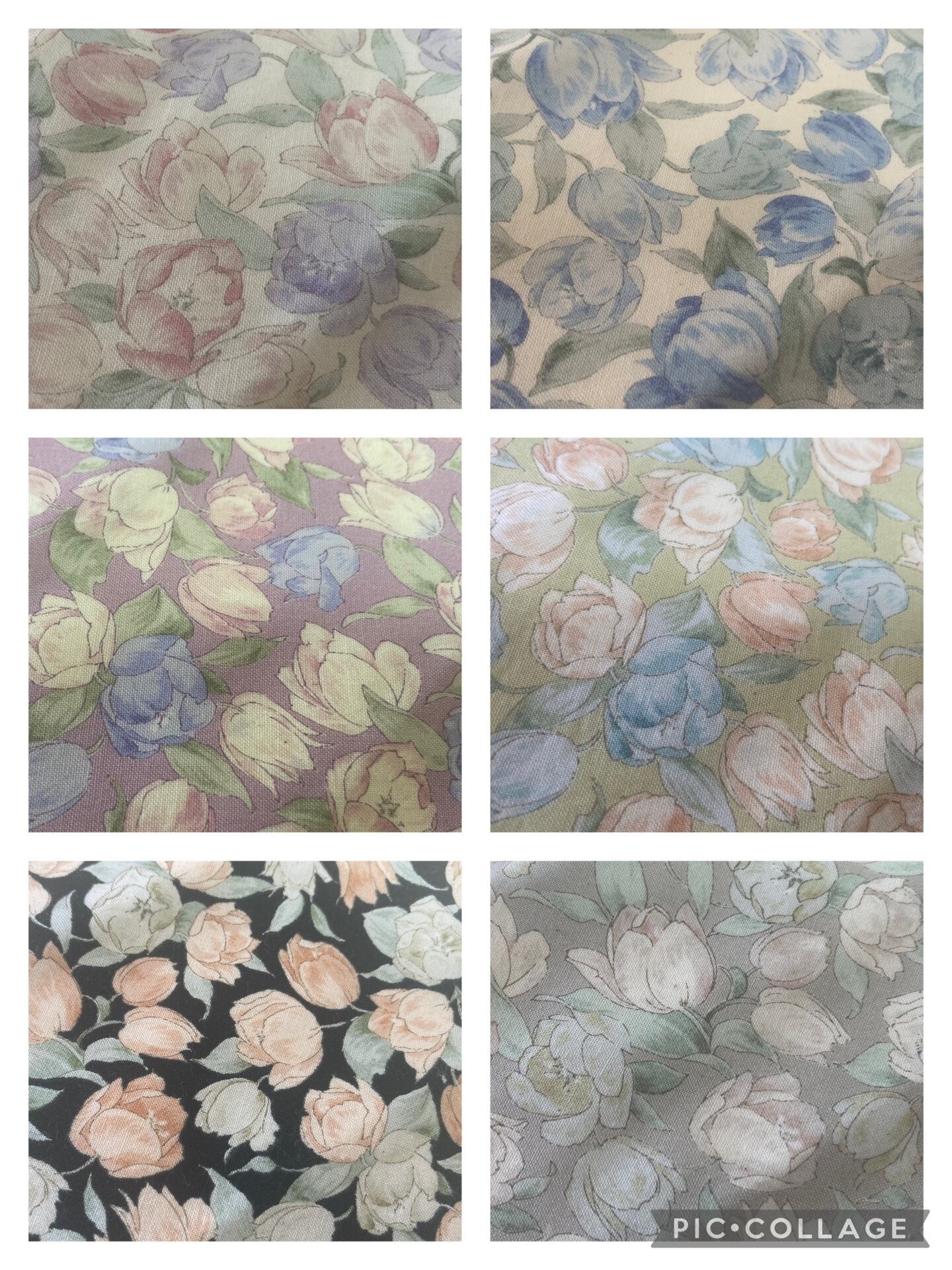 生成りにピンク・ブルーでチューリップ柄が描かれた2枚は、生成り地に綿花のつぶつぶが残っているナチュラル感がポイント。