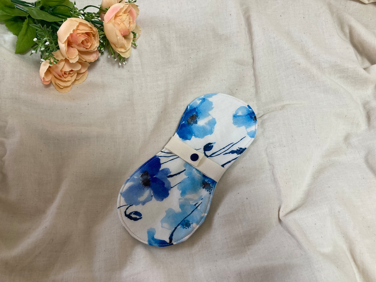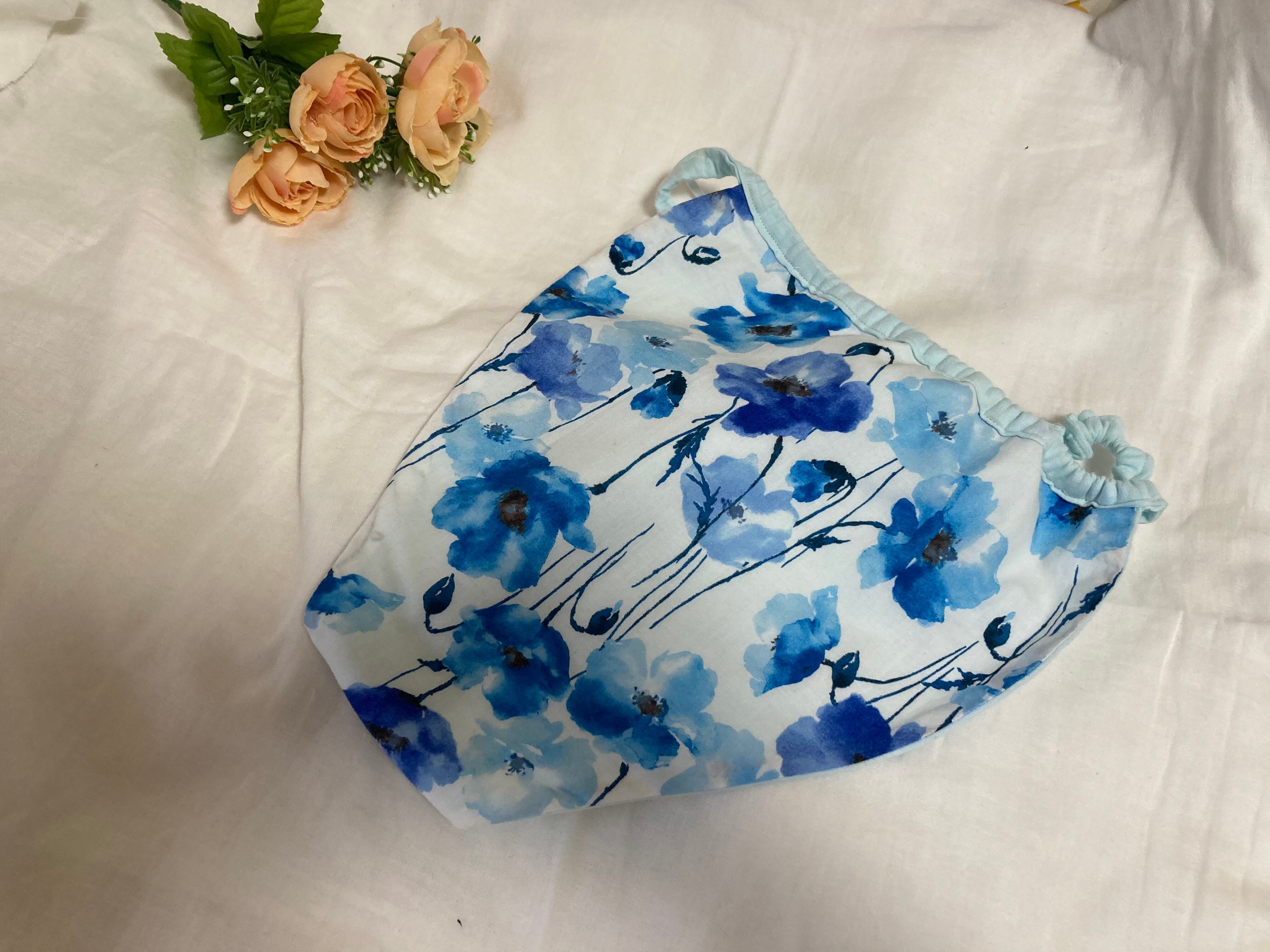 白地に水彩タッチで描かれた青と水色の花柄で、爽やかかつ清楚な印象のふんどしパンツです。