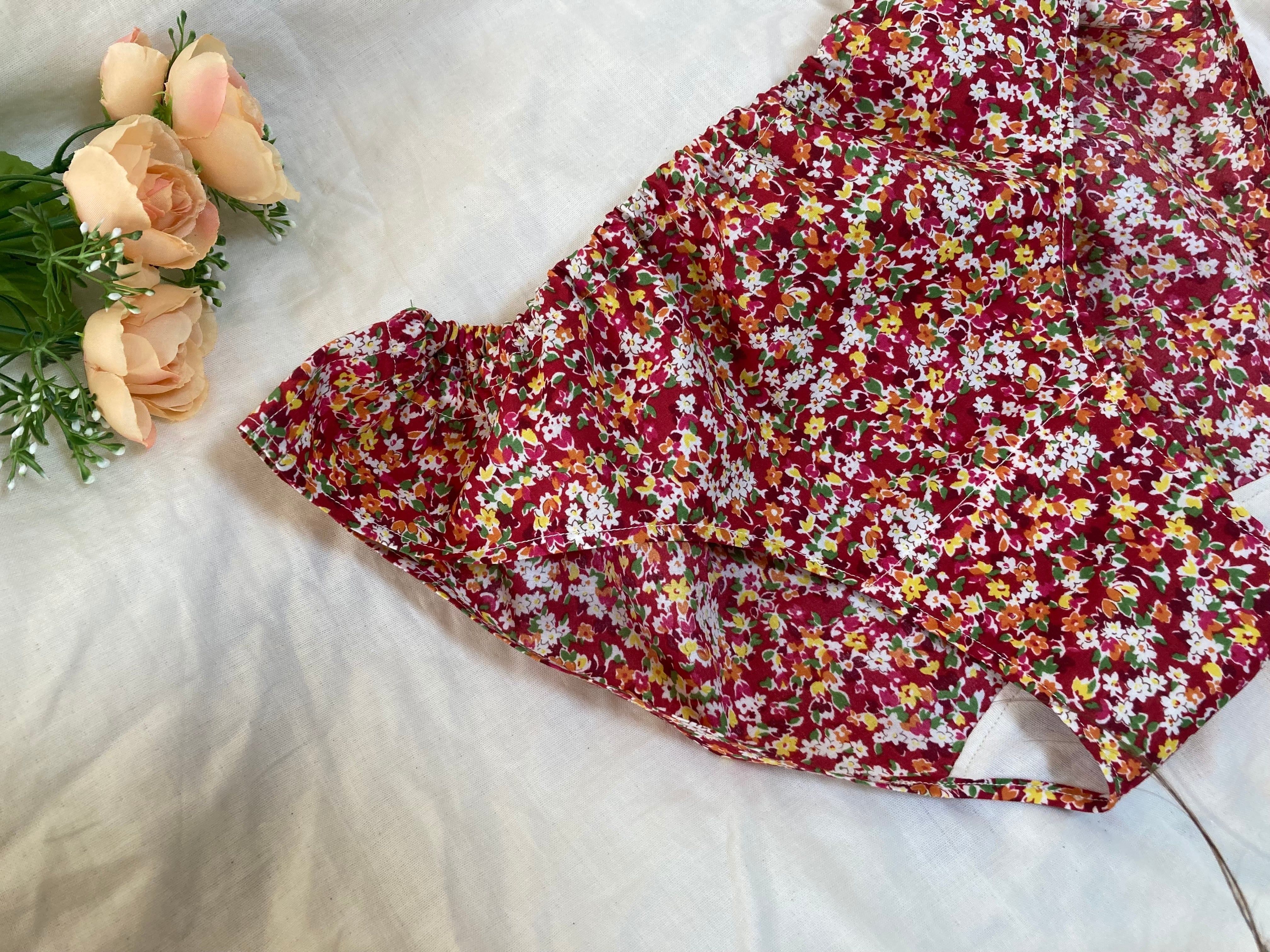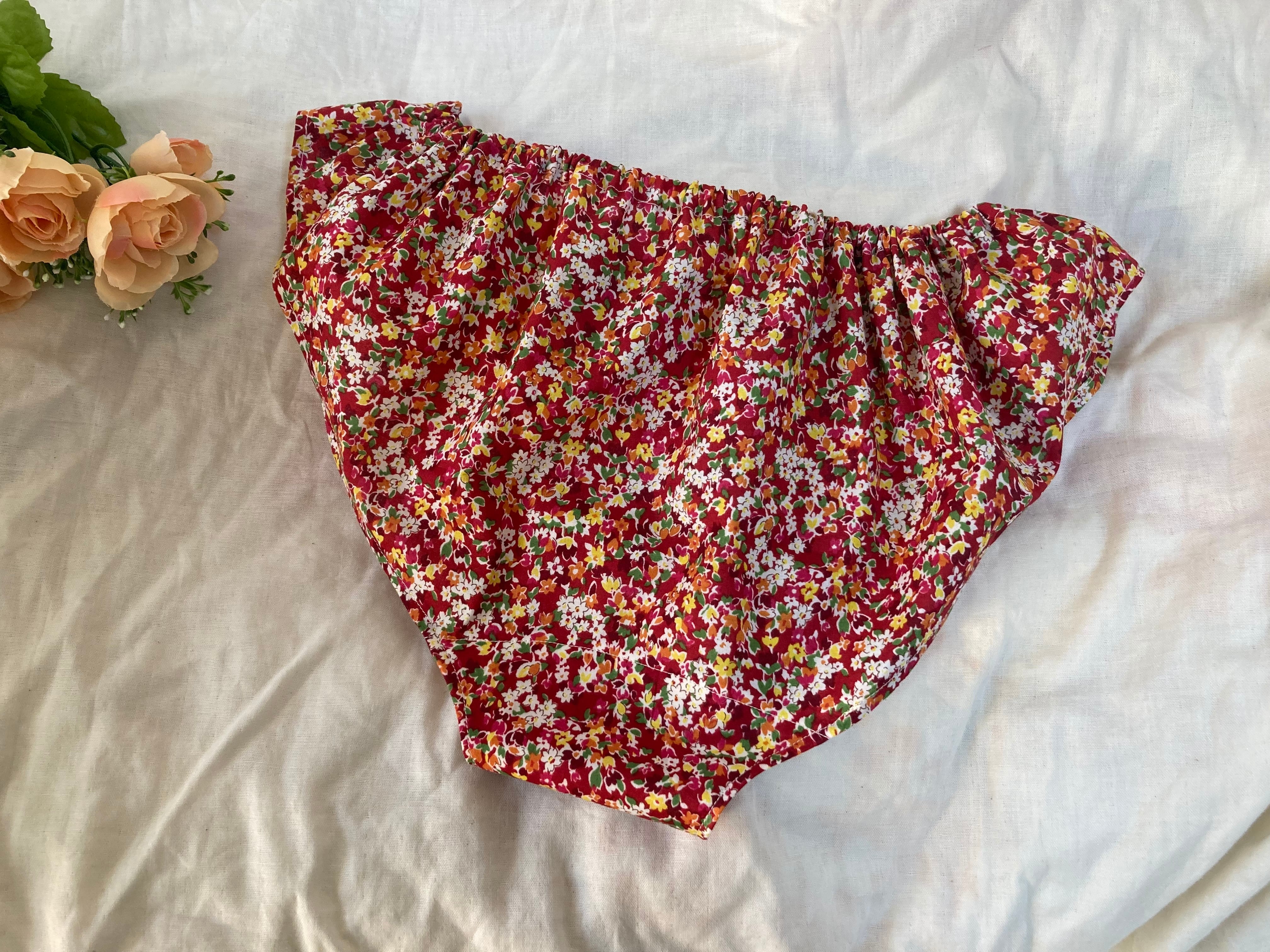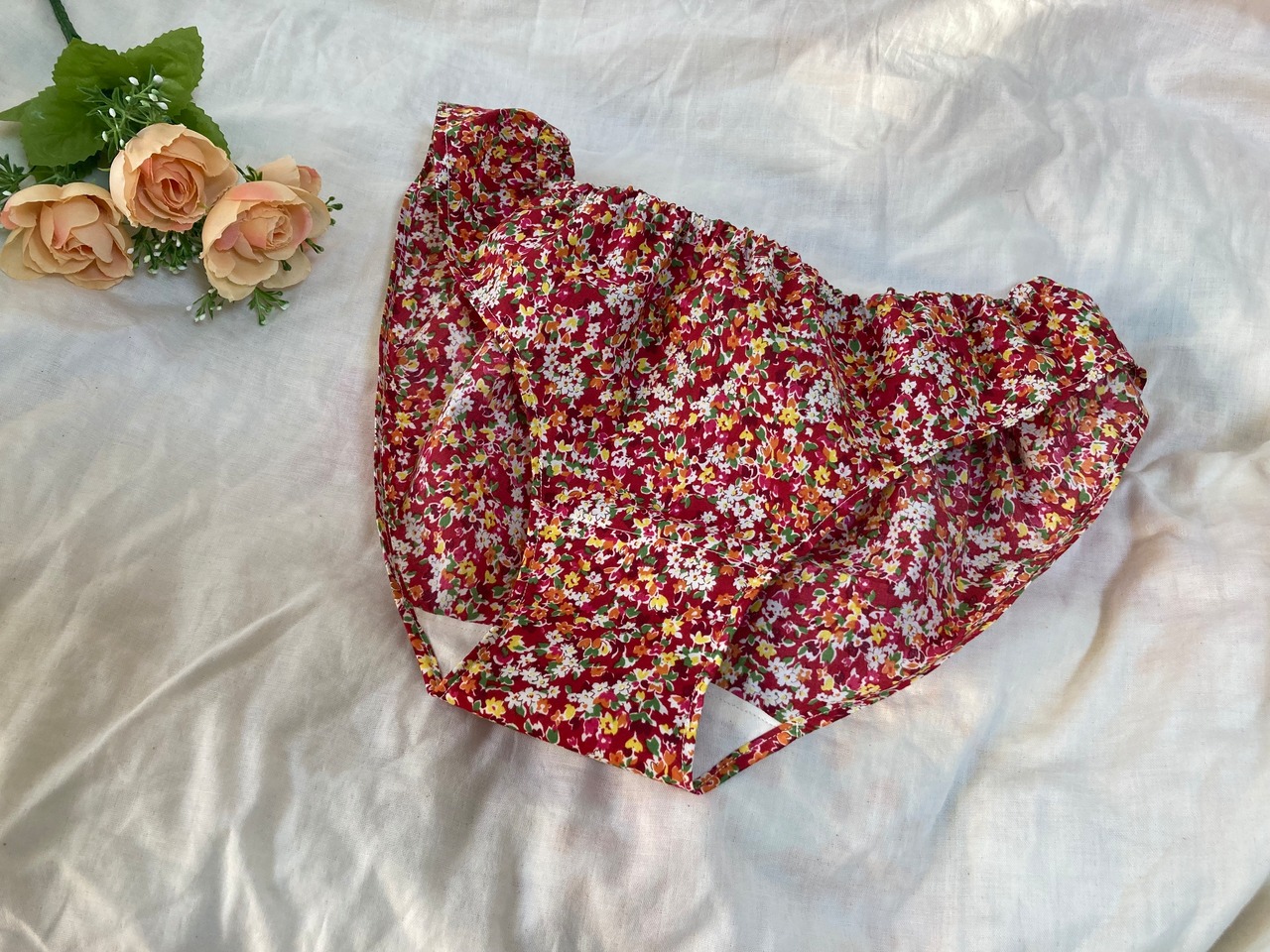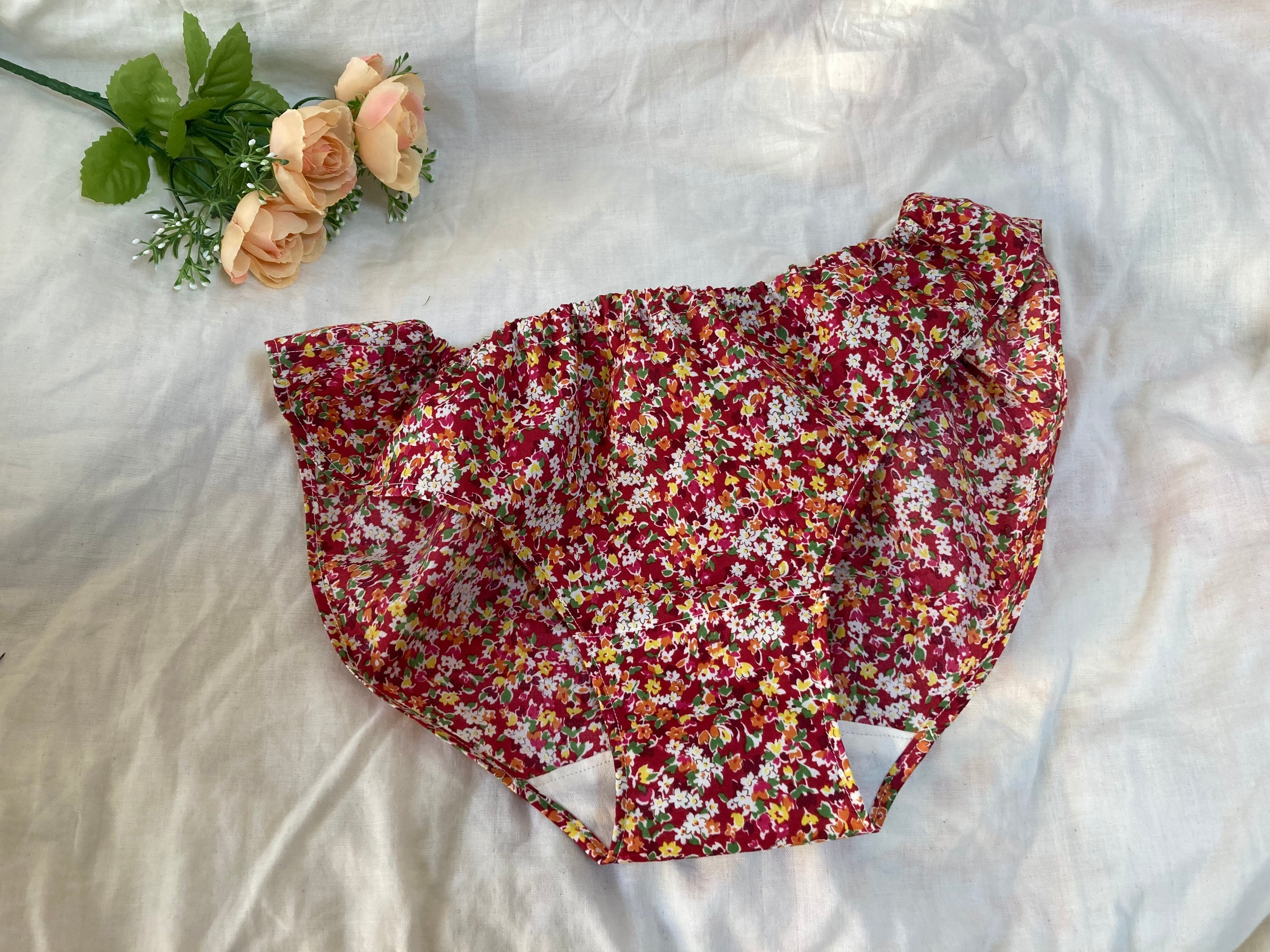色鮮やかな赤の小花柄が目を惹く、華やかで大人カワイイふんどしパンツ。