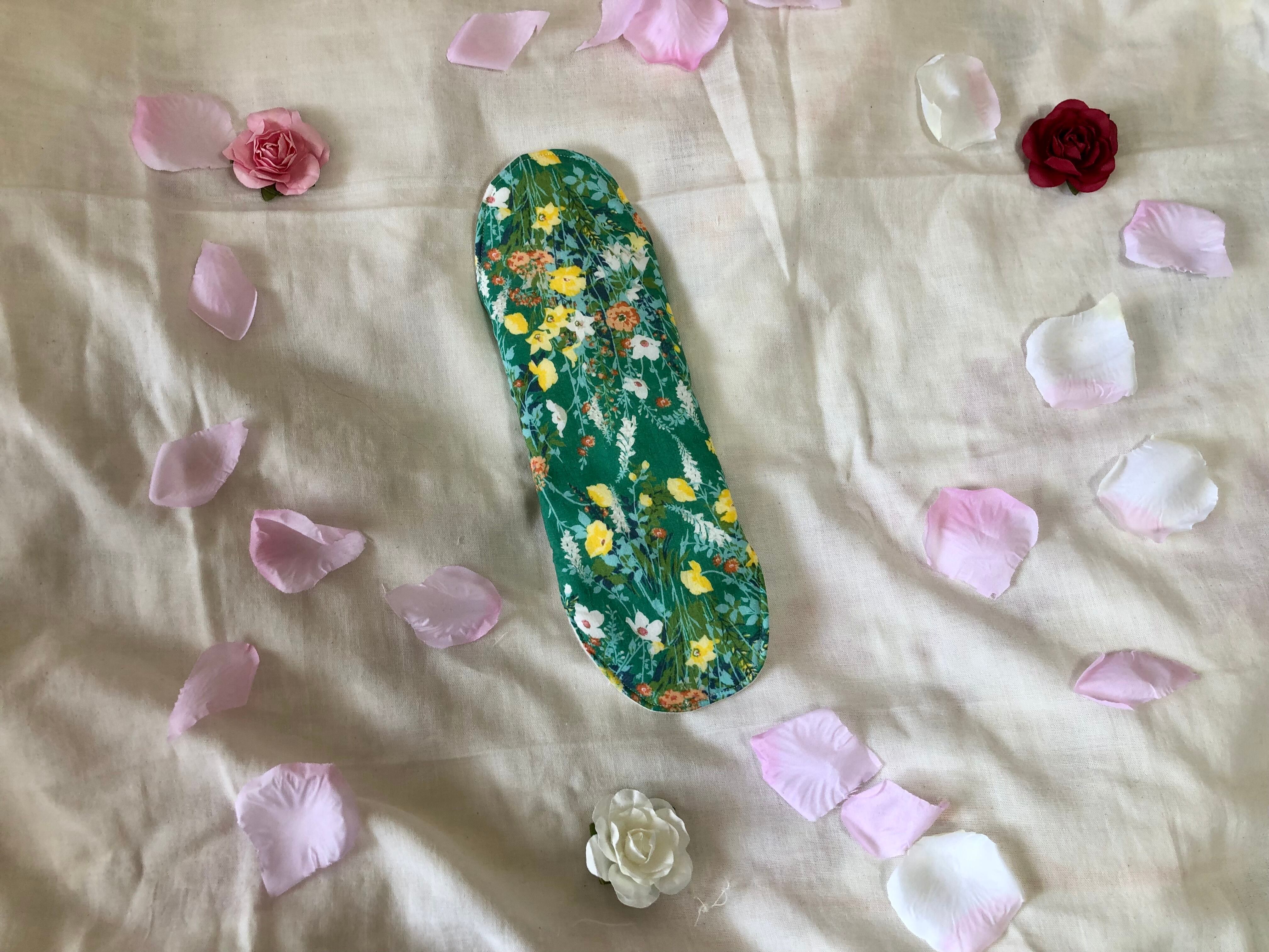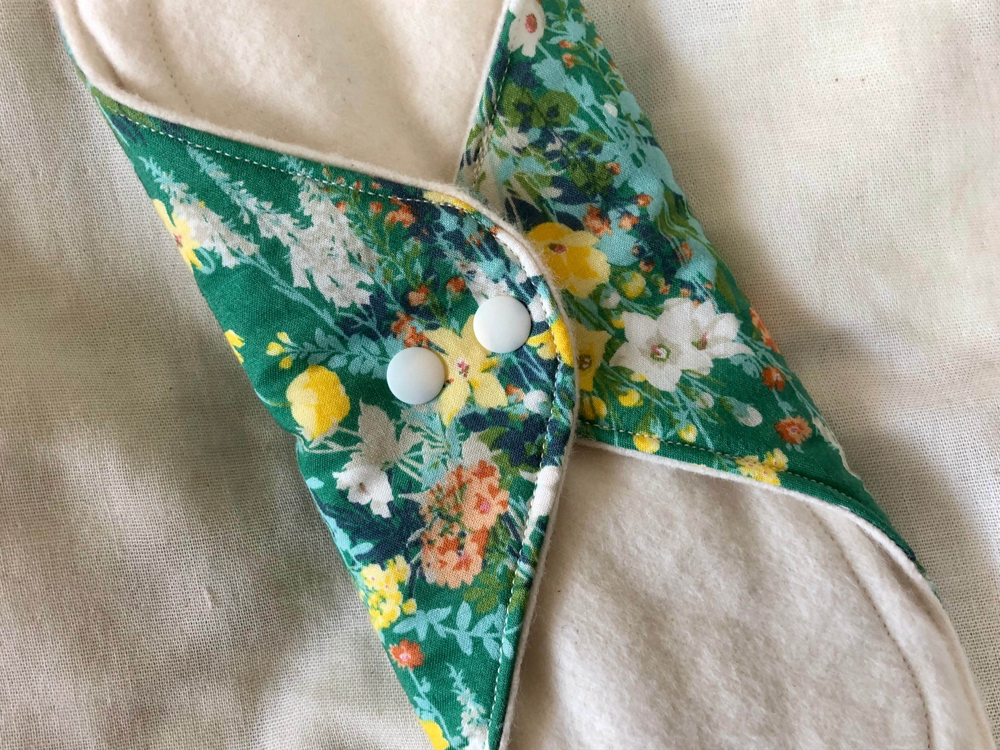 ありそうでなかなかない鮮やかなグリーンの花柄が特徴的な布ナプキンLサイズ。