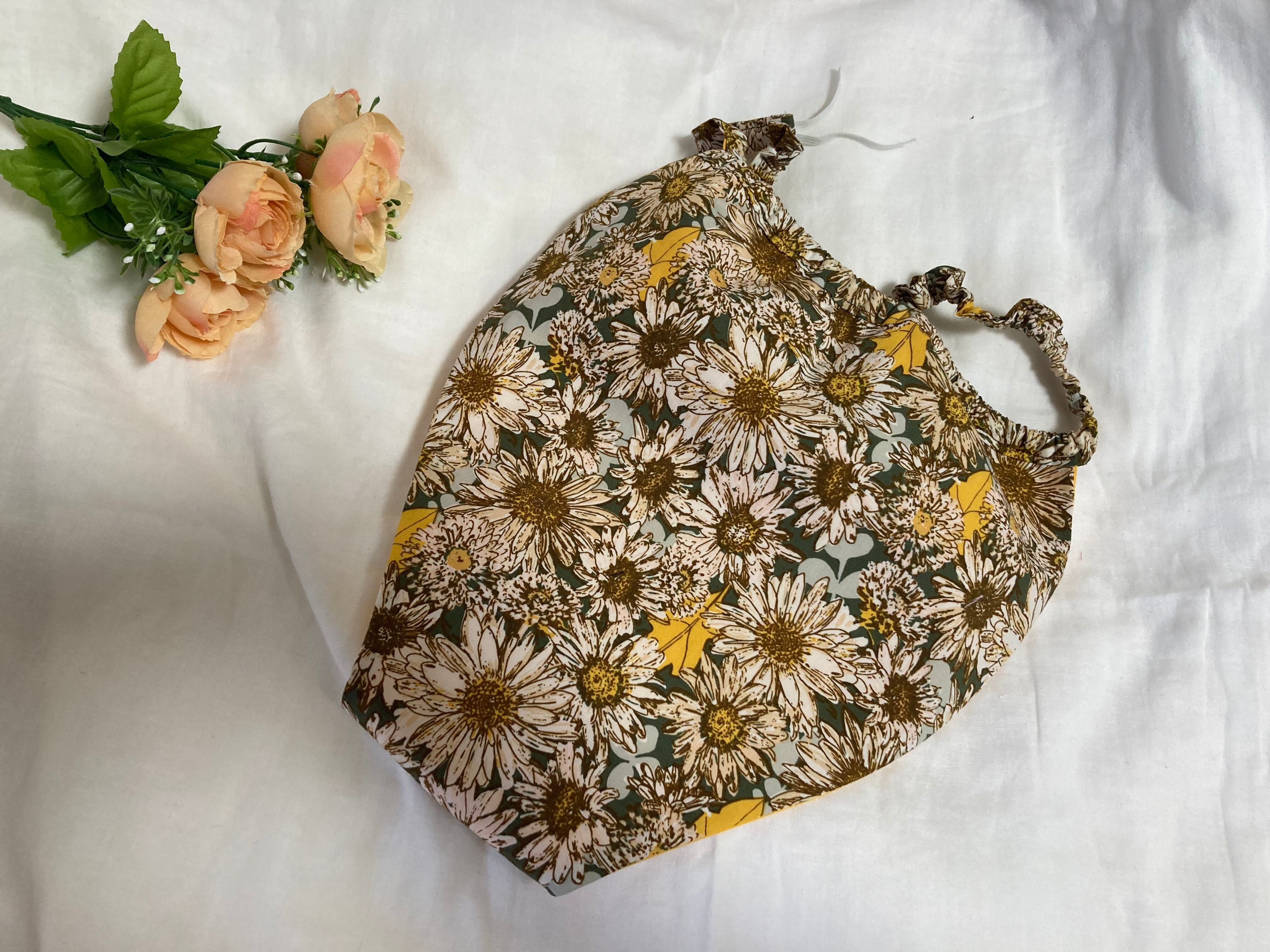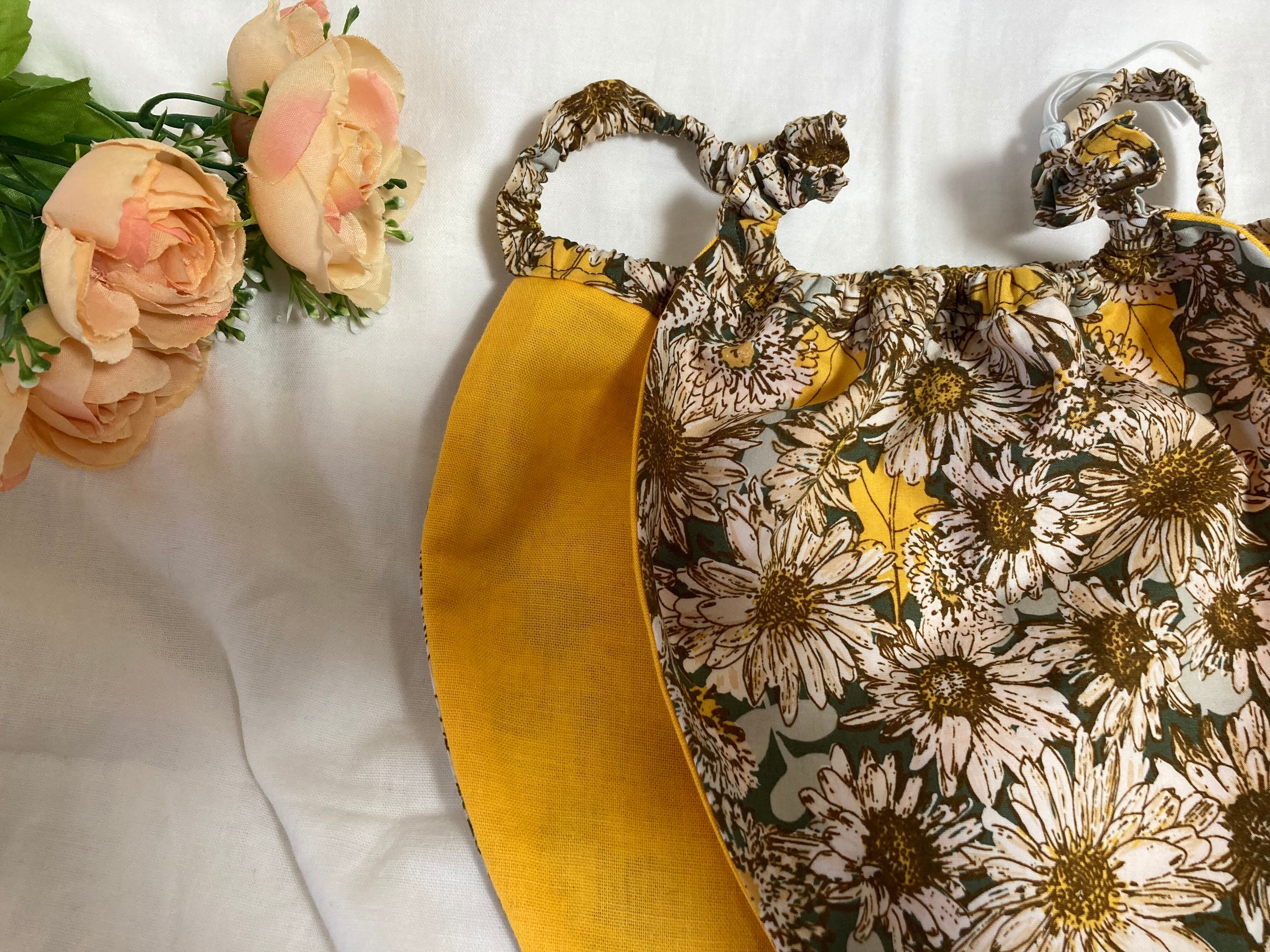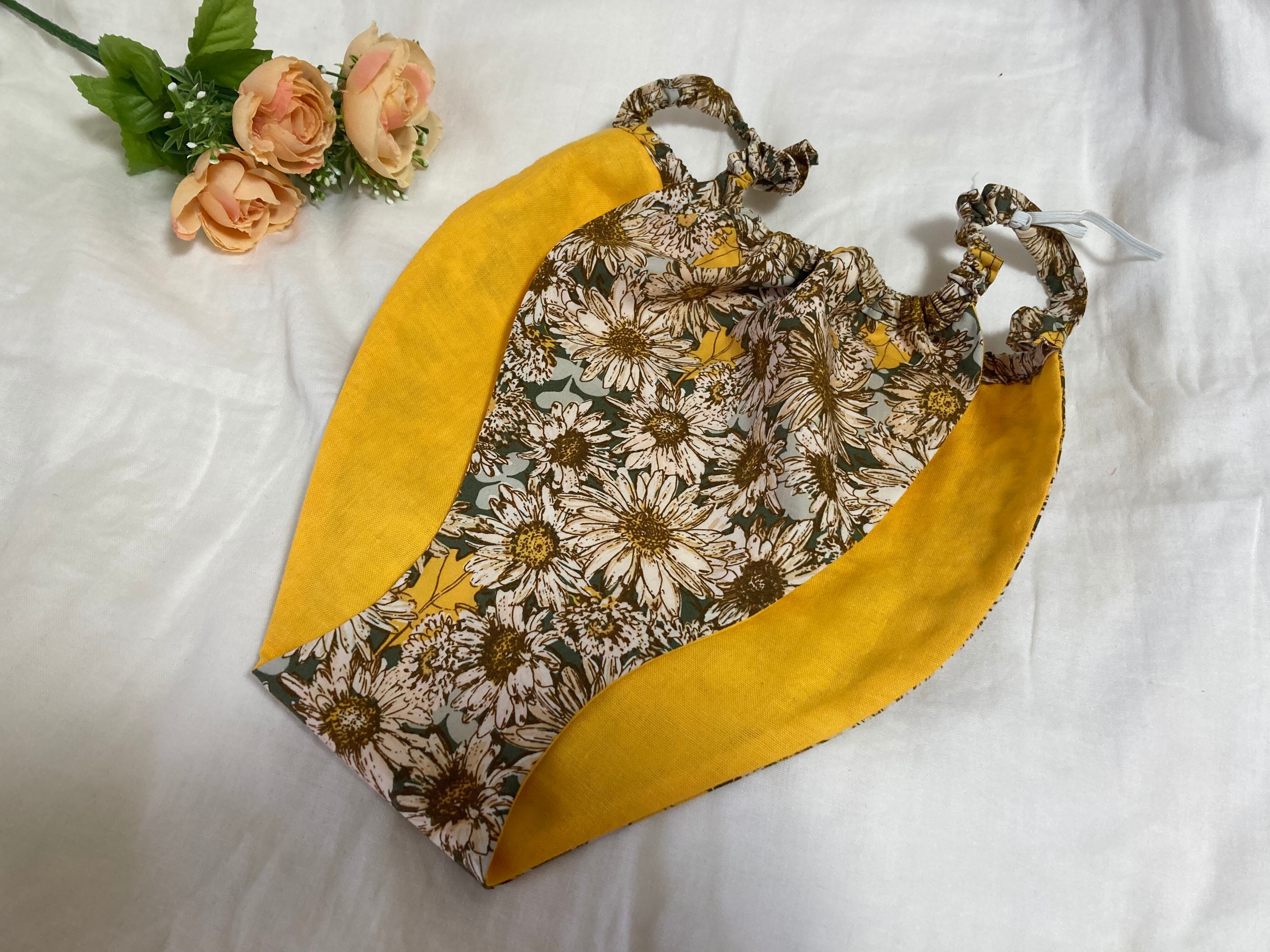ふんどしパンツ DaisyDaisy 肌面オーガニックコットンダブルガーゼ 茶×黄・花柄 ふんどしショーツ お揃い布ライナー(ヘンプ・ダブルガーゼ) | リラックスランジェリー&布ナプキン *Psyche*