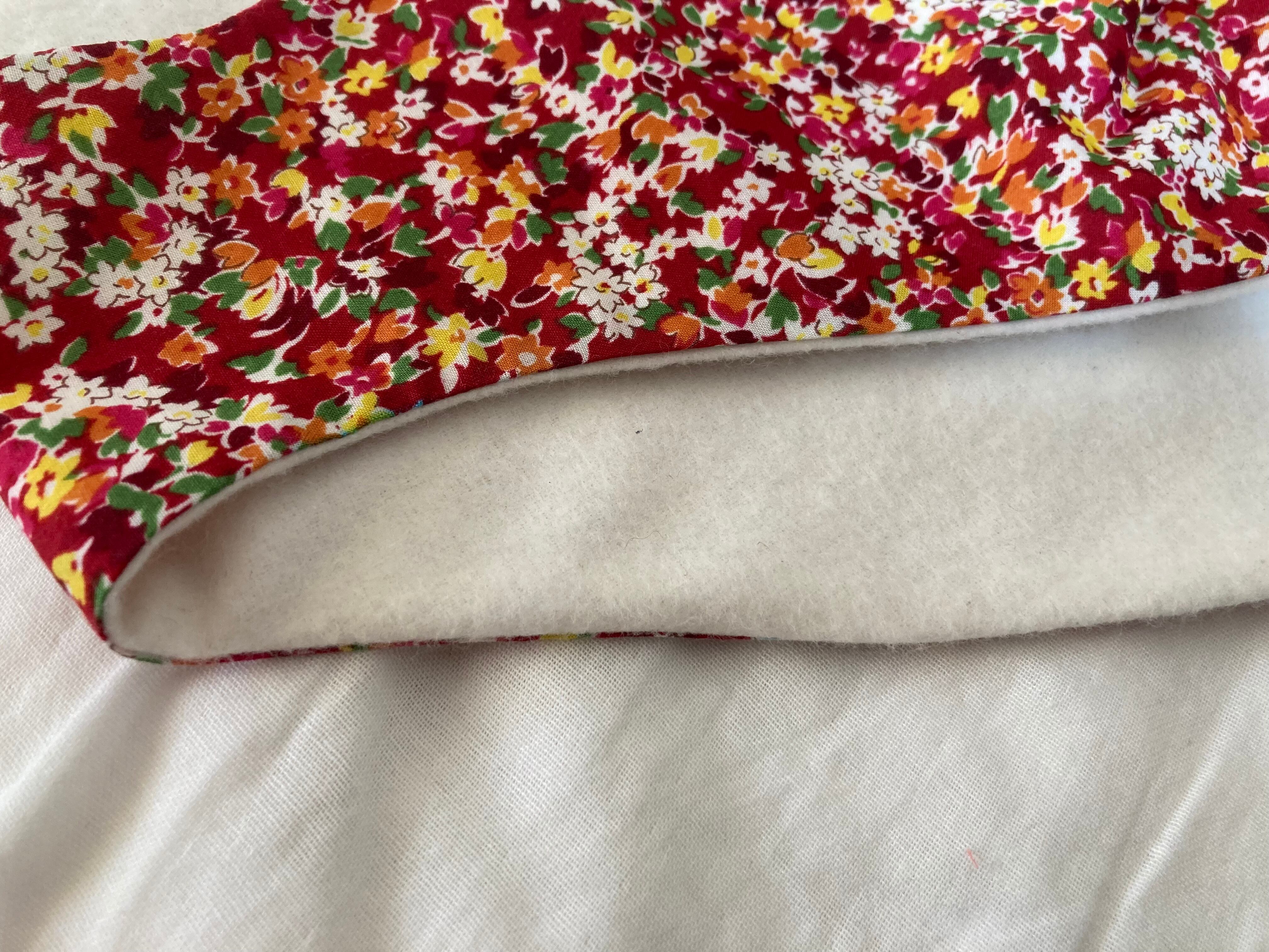 色鮮やかな赤の小花柄が目を惹く、華やかで大人カワイイあったかネルふんどしパンツです。