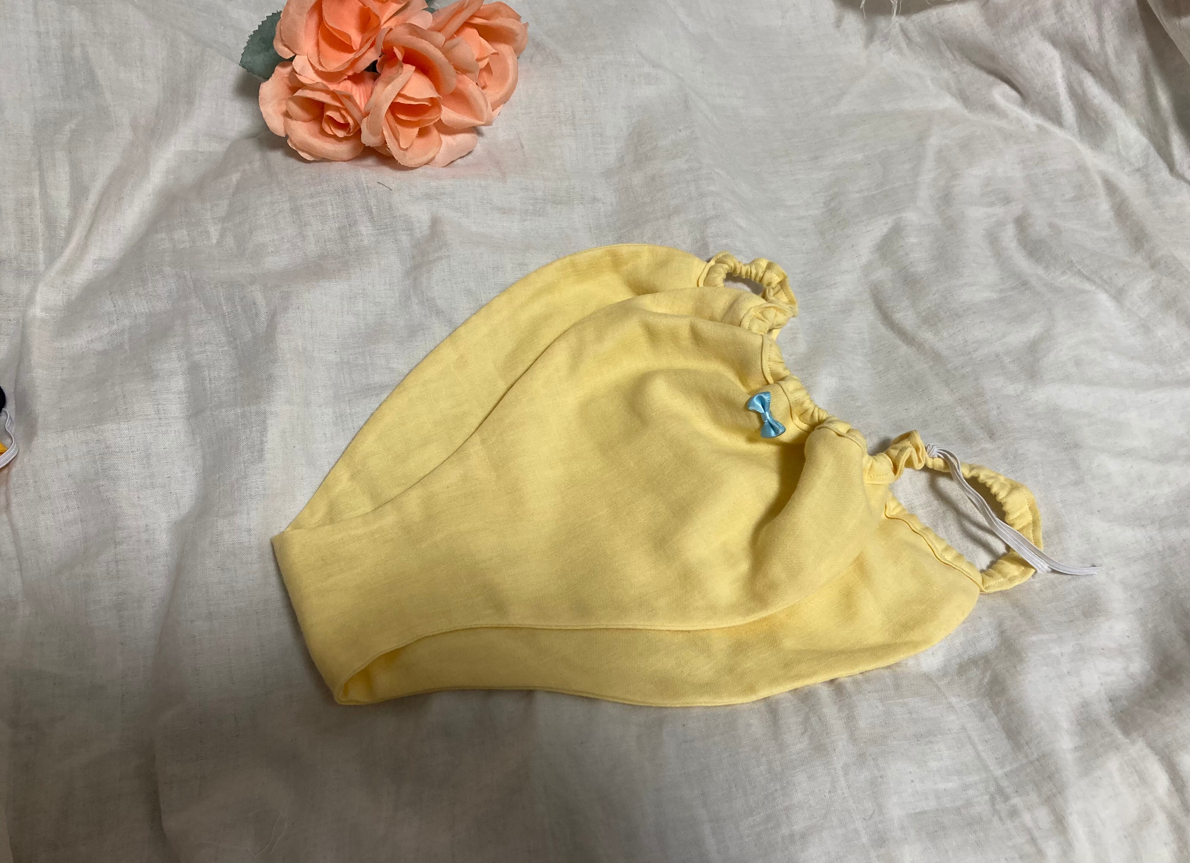 淡く優しいクリームイエローには、濃いめのややビビッドなピンクのリボンをアクセントに添えて、シンプルながらも、可愛らしさを忘れずに。