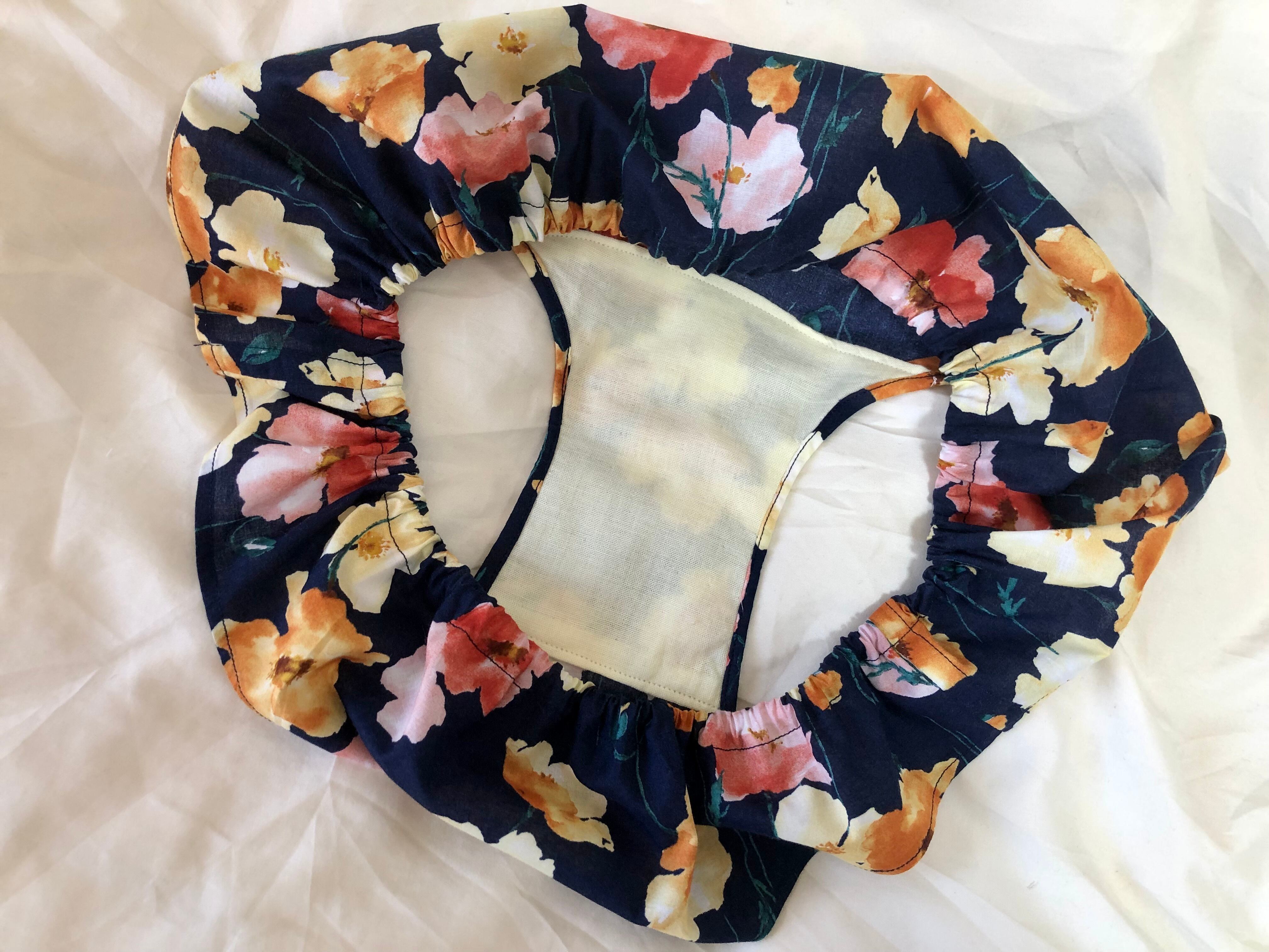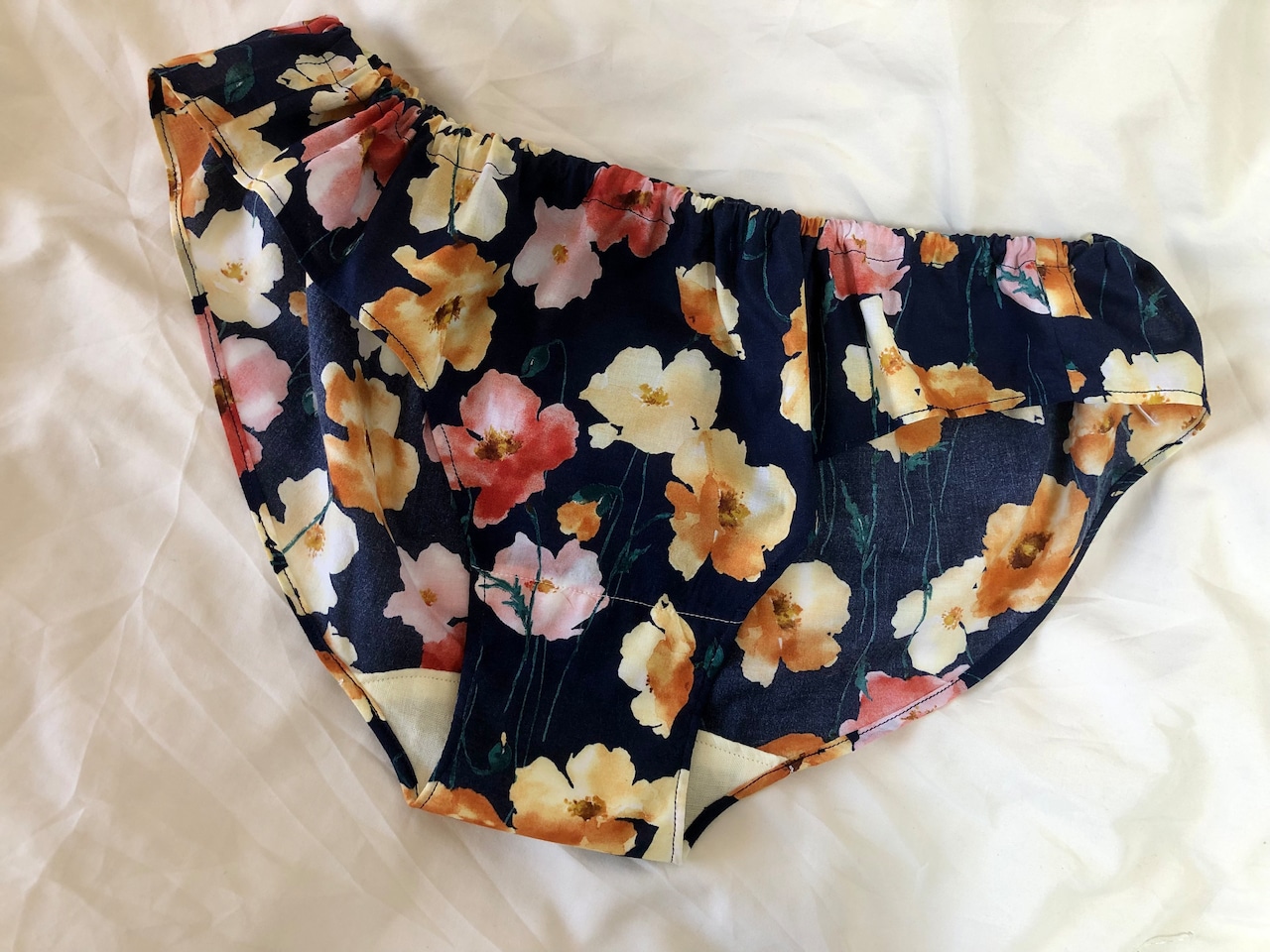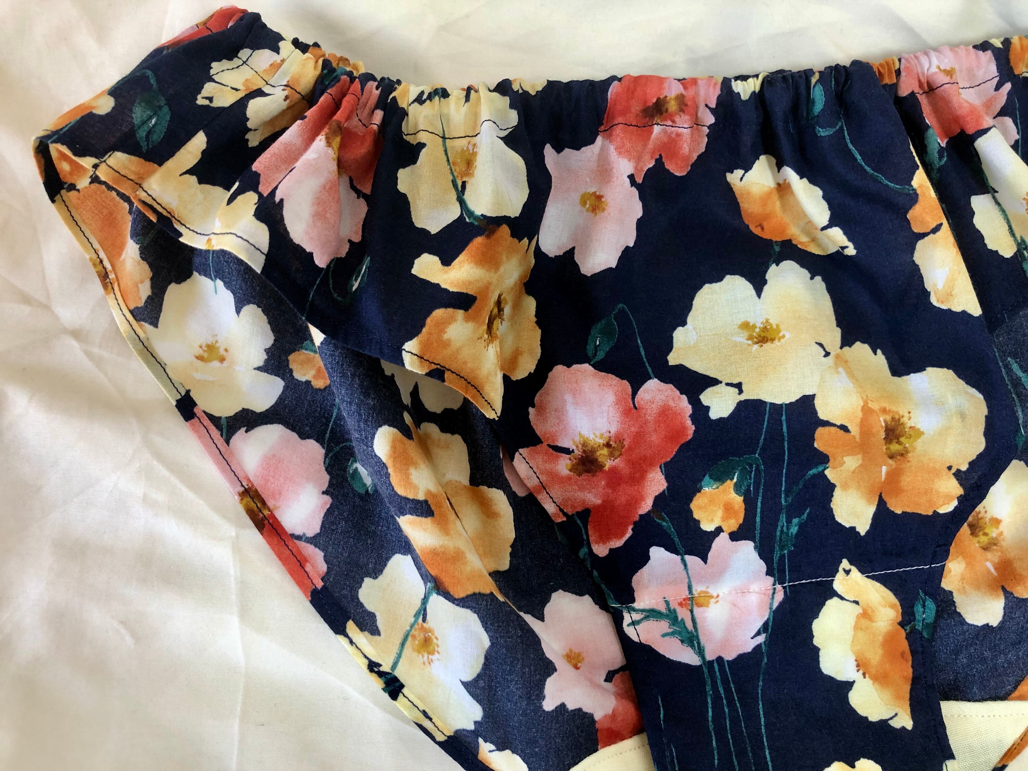 クロッチ部分には、花柄の色味とと合わせて優しいクリームイエローのオーガニックコットン100%の国産ダブルガーゼを使用。