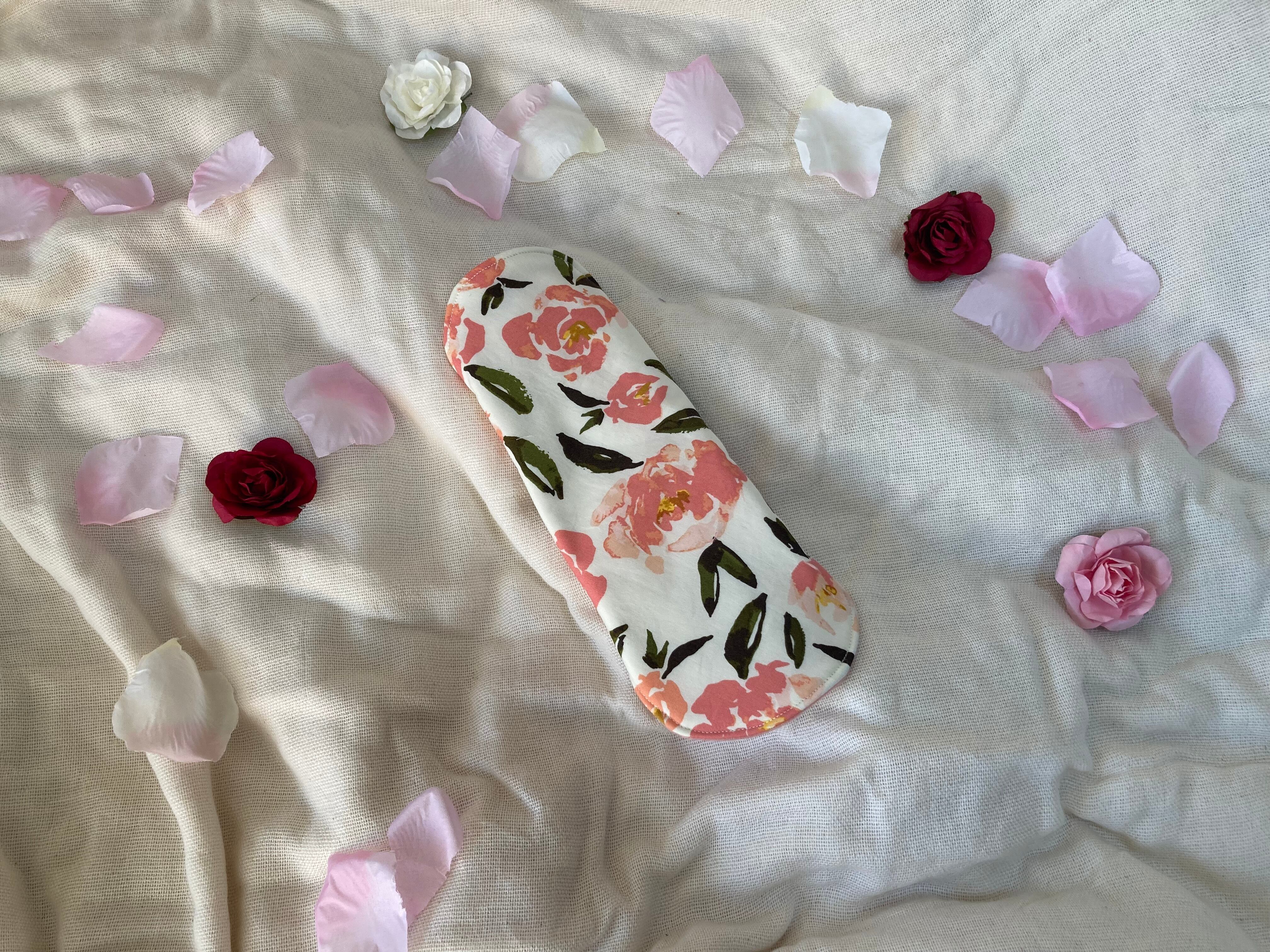 オーガニック茜染め布ナプキン ふつうの日・Mサイズ ミルクローズ柄 オーガニックコットン100%ネル 草木染め 薬効染め 温活・おまたカイロ・生理